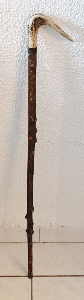 Très belle cane en corne , elle a un petit coté sorti des enfers, je laisse à votre imagination le nom que représente le B gravé sur le pommeau