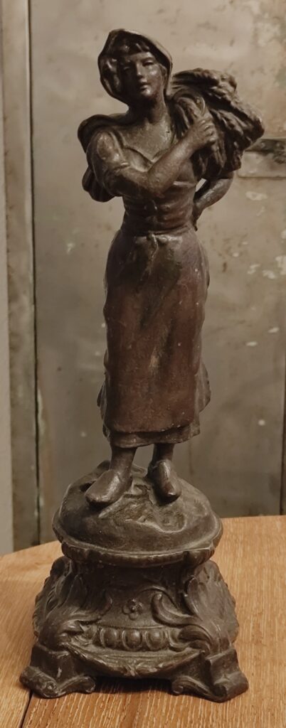 Joli régule début 20eme , représentant un paysanne avec sa faucille est sa récolte
