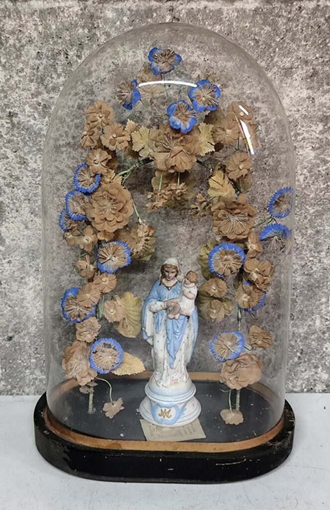 globe ovale avec son sujet religieux (le sujet pouvant etre enlevé) hauteur44 cm